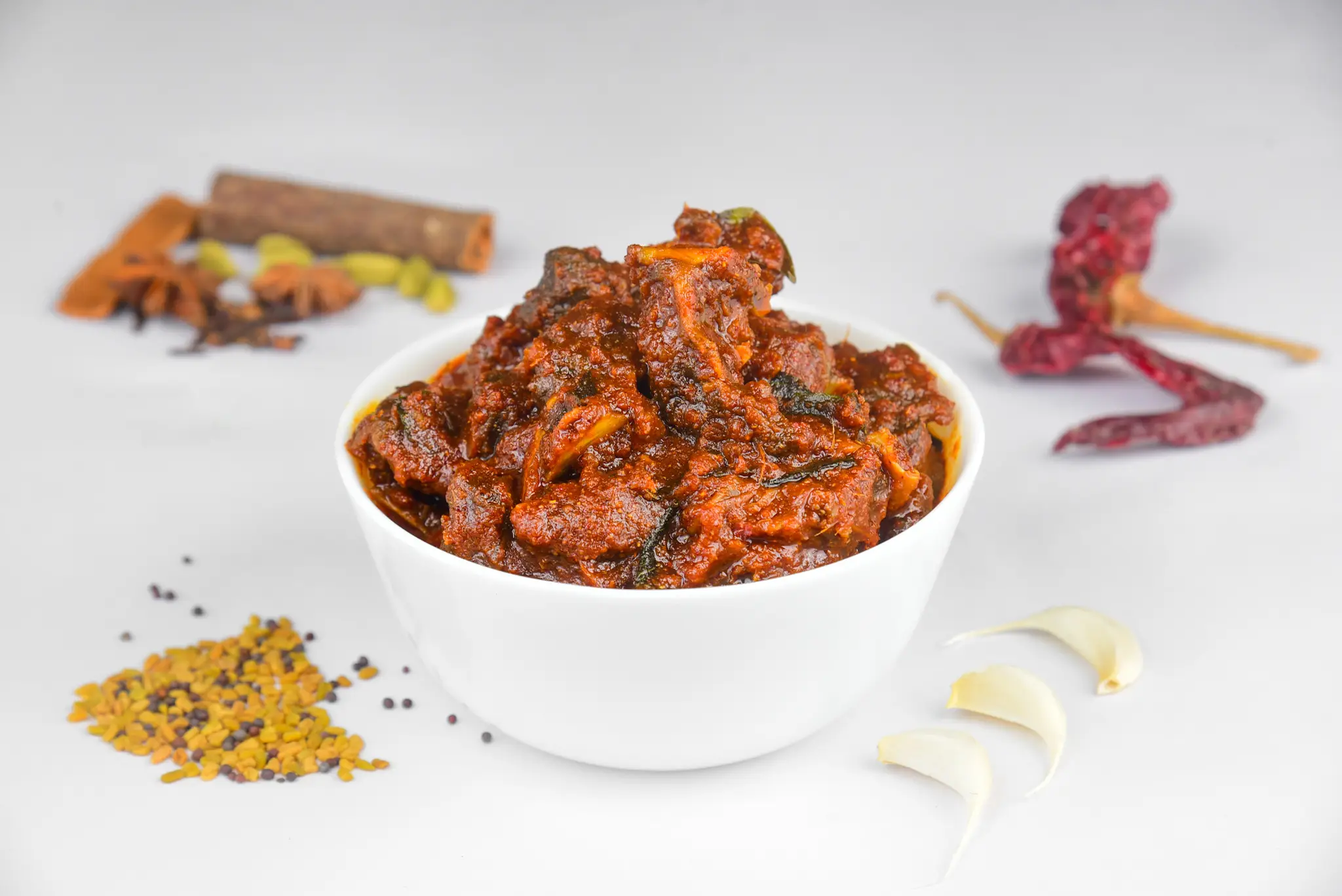 Each piece melts in your mouth and bursts with the heat of Guntur chillies and desi spices. It’s indulgent, rich, and goes perfectly with hot rice, paratha, or just as a spicy sidekick.