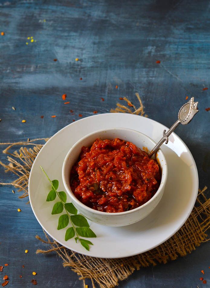 A perfect balance of tangy, spicy, and slightly sweet — our Tomato Pickle is slow-cooked with ripe tomatoes, garlic, and a blend of secret South Indian spices.